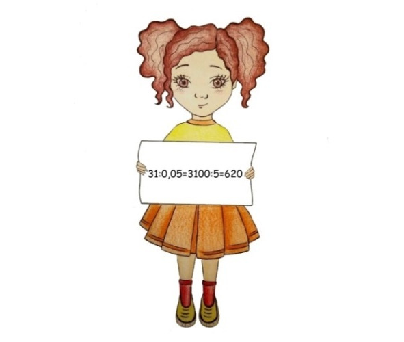 У даному прикладі, десятковий дріб показує 5 сотих частин, тому і число 31 збільшується у сто разів і десятковий дріб збільшується у сто разів. Збільшувати числа потрібно у однакову кількість разів.