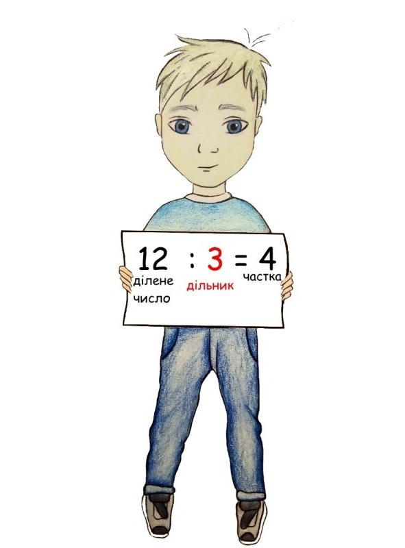 Дільник завжди ділить інше число. У даному прикладі дільником є число 3, воно ділить число 12.