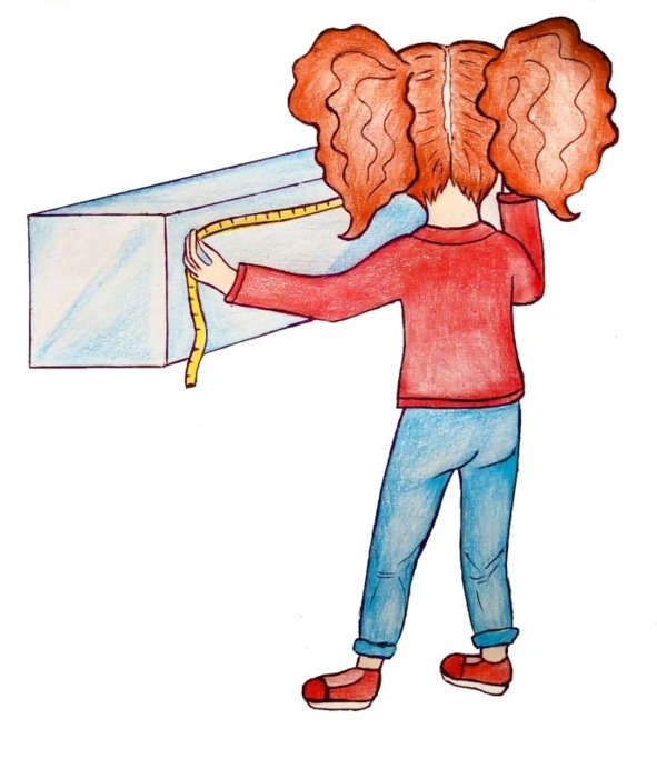 Довжина кімнати 20 м. Довжина цієї коробки 1 м, тому вона вміщується у багажник машини.