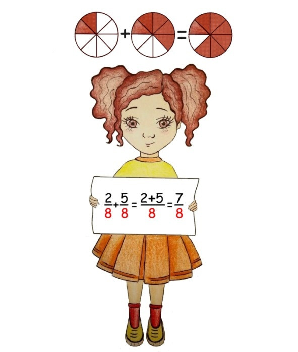 Саме тому знаменник залишається без змін, тому що розмір частин, на які ми порізали залишився той самий.