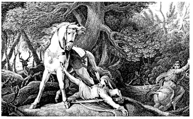 Disconcerted by these portents, Rufus delayed his sport until the evening. Riding with the king’s hunting party was his brother Henry, Walter Tirel of Poix, and other powerful men, jangling arrogantly through a forest they regarded as their private domain. The deer were to be driven towards them and, accordingly, a stag entered the clearing in which the king waited, the long shadows of the summer’s evening cast before him. It was as if the entire affair were choreographed and lit to give it theatricality; shielding his eyes from the rays of the setting sun, Rufus loosed his arrow. As he watched the animal stagger, another appeared, distracting the king’s attention, and ‘at this instant Walter … unknowingly, and without power to prevent it, Oh gracious God! pierced his breast with a fatal arrow. On receiving the wound, the king uttered not a word; but breaking off the shaft of the weapon where it projected from his body, fell upon the wound, by which he accelerated his death.’