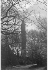 The wind is against me as I cycle over the open heath, and I’m grateful for the descent into the village of Sway, its outskirts marked by a tall stone cross. Remembrance wreaths still lie on the war memorial, their scarlet paper poppies faded by the sun and spotted by rain; propped up on the railing is a discarded hubcap. Dipping into the valley beyond, the lane darkens with tall trees. I turn off into Barrows Lane, where a hand-painted sign announces Arnewood Turkeys, but this is no ordinary farm building. Concrete where the rest of the forest buildings are brick, its classical proportions, domed roof and pillars resemble some strange escape from the Italian countryside. Beside it, in an overgrown field, is a stubby campanile, a plastic bag flapping from its unglazed window. Seemingly unfinished – as if its creator intended to return to his handiwork – this fairytale towerlet labours under an ivy burden. But it is dwarfed by the structure in whose shadow it lies, an eminence impossible to ignore, yet so unexpected that you could pass by without raising your eyes and miss it entirely. Reaching up out of the forest is an immense grey column, rising two hundred feet into the sky. Its very shape seems to change with the clouds – a sun-lit gnomon from one angle, a mad church steeple from another.