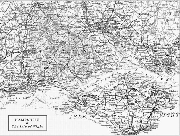 At Brockenhurst, I haul my bike onto the empty platform. The forest station still seems rural, with its two-stop line to Lymington and a waiting room decorated with photographs by Julia Margaret Cameron, given in memory of her son and intended to beautify this connexion between London and her home on the Isle of Wight. But now visitors are greeted by letters spelt out in ballast on the side of the track Welcome to Brock. Beyond the village, with its butcher selling venison and its stockbroker-belt guarded by expensive cars, the B-road races the railway to the coast, while on the horizon the Island hovers where clouds should be, a lowering landmass separated by the unseen sea.