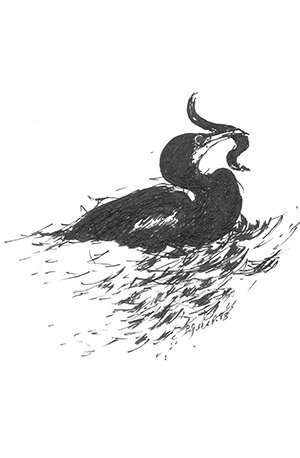 El cormorán, cuya oscuridad está implícita en su capacidad de sumergirse cuarenta y cinco metros bajo la superficie del mar, antecede a todos los monarcas tiránicos; su pose de pterodáctilo evoca el pasado reptiliano de todas las aves. Y, sin embargo, para algunos ojos modernos, el cormorán es demasiado común: un carroñero, un cuervo marino o, de acuerdo con la insensible denominación que recibe en el sur profundo de Estados Unidos, el ganso negro.8 Según Mark Cocker, los pescadores británicos lo llaman la «peste negra» y exigen su erradicación. Pero este desfile de descalificaciones nos describe a nosotros mismos: ponemos nombres para conocer y poseer, no necesariamente para comprender. Ni siquiera disponemos de palabras adecuadas para nosotros mismos.