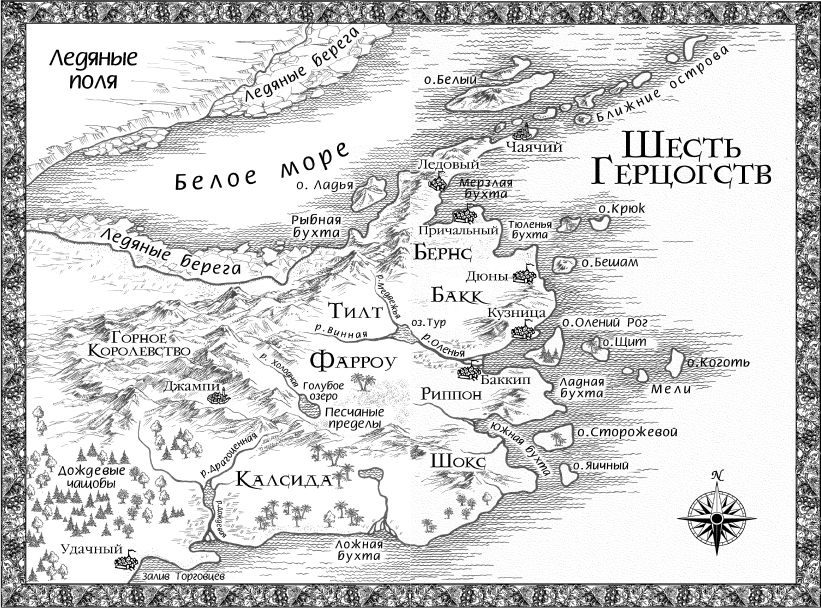 Теперь я знаю: у каждого человека должна быть цель в жизни. Чтобы понять это, мне потребовалось два десятка лет. Впрочем, уж в этом-то я не одинок. Тем не менее урок, раз выученный, запечатлелся в моей памяти навсегда. И теперь, когда у меня осталась лишь моя боль, я нашел себе цель, обратившись к делу, о котором давно просили и леди Пейшенс, и писец Федврен. Я взялся за перо, пытаясь изложить связную историю Шести Герцогств, но обнаружил, что не могу подолгу сосредоточиваться на одной теме и поэтому развлекаюсь маленькими отступлениями. Я пишу о моей теории магии, о политике, размышляю о других культурах. Когда мне становится совсем плохо и мысли начинают путаться, я работаю над переводами или делаю четкие копии старых документов. Я стараюсь занять свои руки и тем самым отвлечься от гнетущих мыслей.