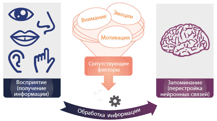 Между восприятием и модификацией памяти происходят сложные процессы, подверженные влиянию огромного множества факторов, в том числе психологических. Например, мы едва ли эффективно научимся чему-то, если испытываем усталость, боль или голод. Уровень внимания и эмоциональный отклик во время обработки информации также влияют на качество ее усвоения и очень зависят от внешних факторов (посторонние шумы, подача информации, ее организация и т. д.).