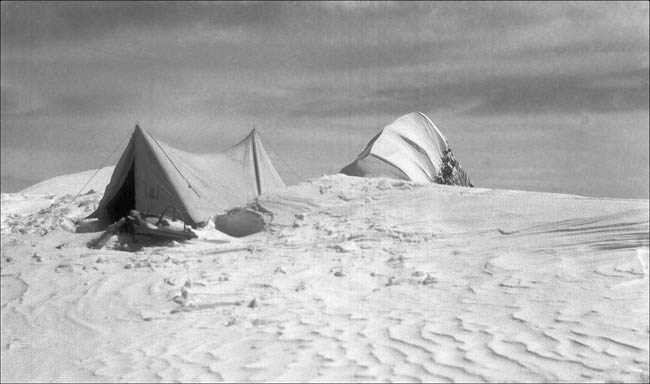 Obwohl der Hualcan relativ einfach zu besteigen war, erwies er sich in anderer Hinsicht als unglückliche Wahl. Aufgrund seiner Lage innerhalb der Bergkette und zu den umliegenden Tälern zog er beständig eine Wolkendecke, heftige Gewitter und tosende Stürme an. Unter diesen furchteinflößenden Umständen und allein waren die Tage für Pallas quälend lang, und zu häufig verhinderte das Wetter jegliche Forschungsarbeiten. An einigen Tagen blieb dem einsamen Bergsteiger-Forscher nichts anderes übrig, als in seinem Zelt auszuharren. Seine einzige Begleitung waren attraktive, glänzende und – in einigen Augen – übergewichtige Instrumente, die sich ohne Entschuldigung in der engen Behausung breitmachten und ihm kaum Platz für seinen Schlafsack ließen. Andererseits dienten sie als sichere Verankerung für das Zelt, wenn Winde mit Sturmstärke drohten, ihn vom Berg zu blasen. In den schlimmsten Momenten der Gewitter verzog sich Pallas in eine Schneehöhle, die er gegraben hatte, da er befürchtete, das Zelt und sein Inhalt würden Blitze anziehen. Ein ums andere Mal riss der Himmel auf und erlaubte ihm, die Monotonie zu unterbrechen und den nahen Südgipfel des Hualcan zu besteigen, von wo aus er die spektakulären Berge der Umgebung bewundern konnte. „Da saß ich zufrieden und glücklich vor dem Zelt und freute mich der Schönheit [sic] dieser Hochgebirgslandschaft und der weiten Welt. Stundenlang konnte ich so sitzen …“83
