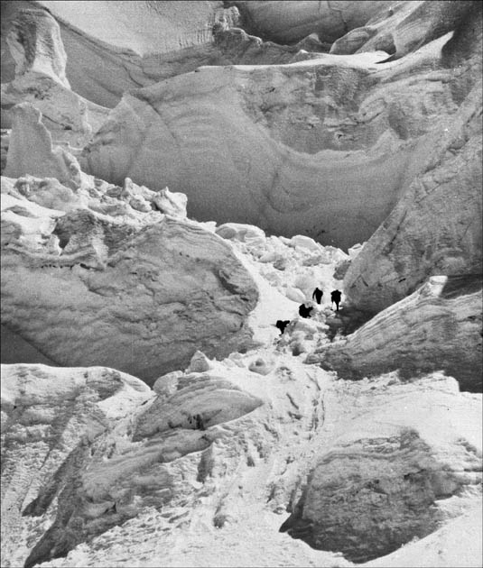 Kletterei durch absturzbereite Eis- und Schneeblöcke am Nevado Huascarán