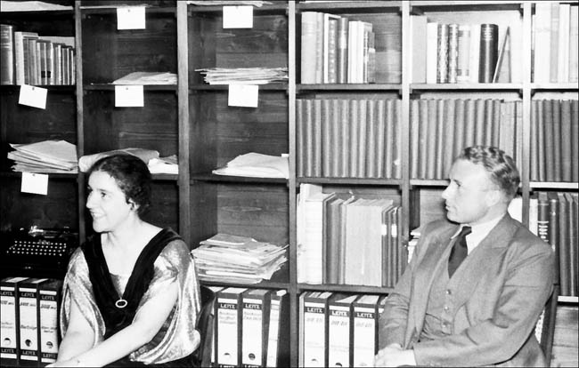 Käthe Schmid und Expeditionsleiter Willy Merkl im Büro der Nanga-Parbat-Expedition im Hause Schmid (Abdruck mit freundlicher Genehmigung des Deutschen Alpenvereins)