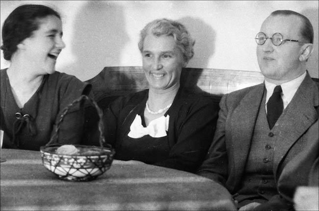 Käthe (l.) und Willi Schmid (r.), das Presseteam vom Nanga Parbat, bei einem Abschiedsfest für die Expedition in ihrem Haus (Abdruck mit freundlicher Genehmigung des Deutschen Alpenvereins)