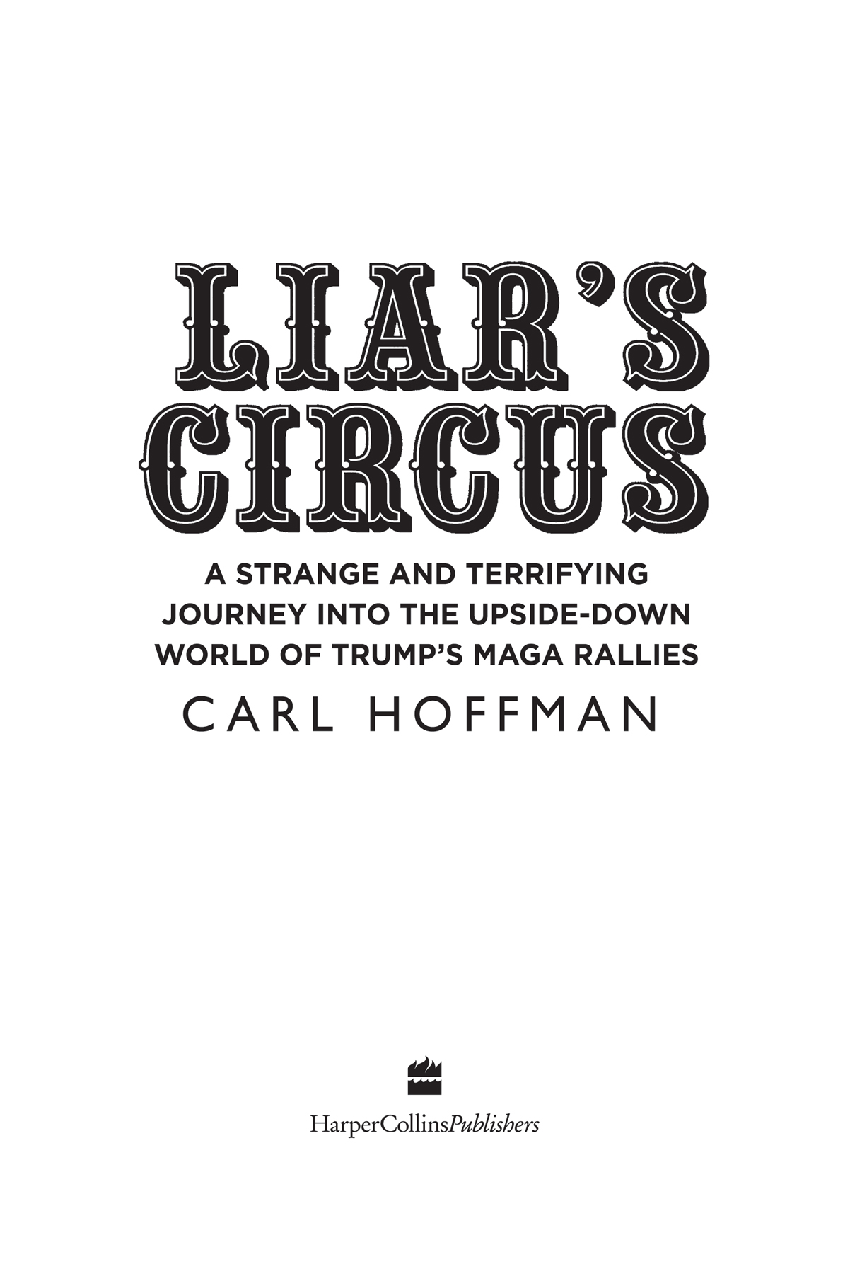 This is a work of nonfiction drawn from approximately three months on the road going to eight rallies in eight states. I drove more than five thousand miles, spent more than 170 hours in line in arena parking lots, and listened to the president, up close and in person, for more than twelve hours. Every quote is true, either transcribed in contemporaneous notes or recorded on my telephone. To capture the absurdist non sequitur nature of so many conversations, I have tried to keep them whole, rather than stitched together, which sometimes makes for long, strange passages. Each quote from the president was checked against transcripts of his speeches. Every name is real. There is nothing fake here.