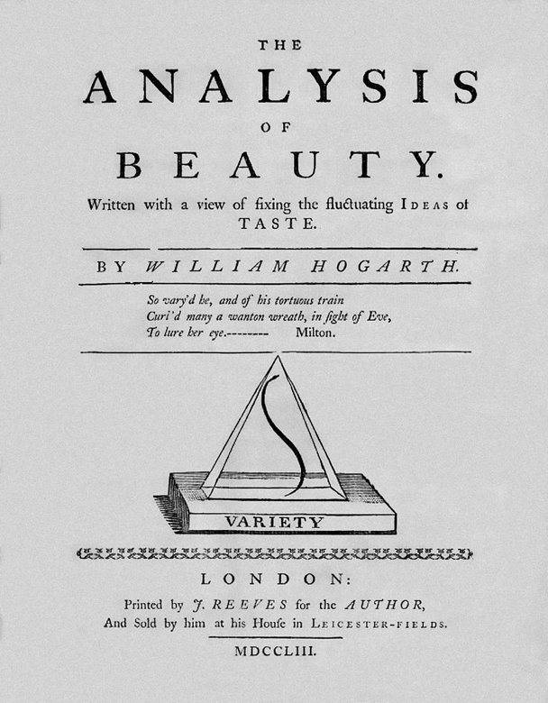 Трактат «Анализ красоты» увидел свет весной 1753 года. Его опубликовал малоизвестный лондонский издатель Джон Ривз (?–1767), когда Хогарту было уже 55 лет. К тому моменту мастер завершил свои знаменитые полотна «Ворота Кале» (1748–1749), «Апостол Павел пред прокуратором Феликсом» (1748–1751), «Поход гвардии в Финчли» (1749–1750), а также несколько заказных портретов детей видного английского хирурга Джона Рэнби, двух старших отпрысков четы Маккинен, юного Эдуарда Монтагью – сына Джона Монтагью, четвертого графа Сэндвича и Дороти Фэйн. Получив за детские портреты солидный гонорар, Хогарт-живописец позволил себе взять паузу в работе и погрузился в сочинительство – в свой трактат «Анализ красоты», которому посвятил около двух лет. Он тщательно обдумал каждую из семнадцати глав будущей книги. Специально сделал несколько подготовительных рисунков и две гравированные таблицы, а также придумал титульный лист, украшенный небольшой заставкой в технике гравюры на дереве. Изящная заставка символизировала основную идею его теории так называемой линии красоты и привлекательности. Хогарт был абсолютно убежден, что S-образная, волнообразная или змеевидная линия, как он сам ее называл, всегда помогала художникам достичь воплощения идеально прекрасной формы. Он считал, что активное использование в художественной практике «линии красоты», безусловно, улучшает мастерство художника и, как следствие, повышает качество создаваемого им произведения искусства.