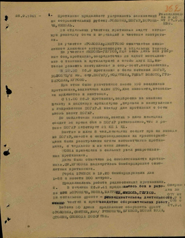 Журнал боевых действий Брянского фронта за 26.09.1941.