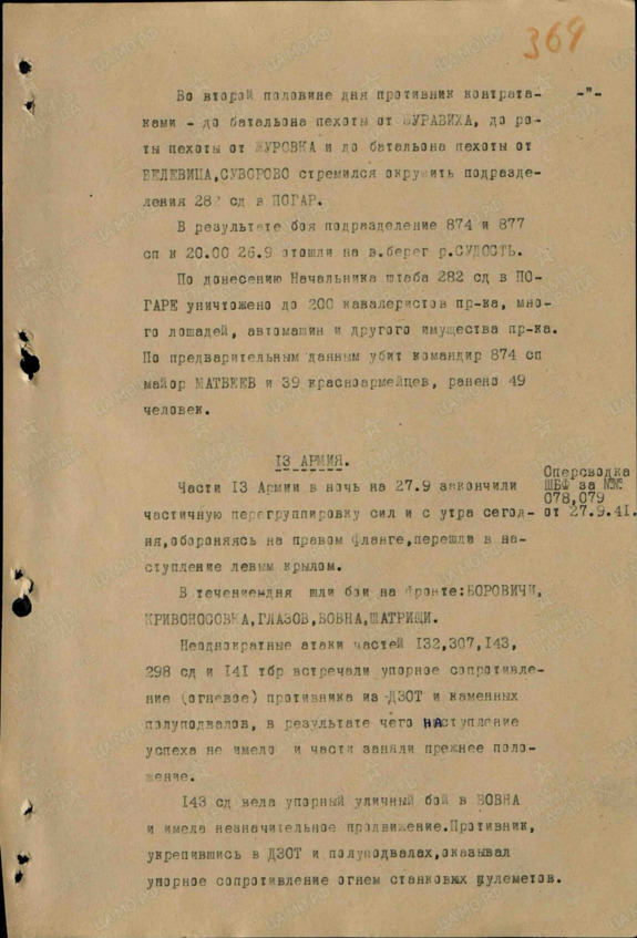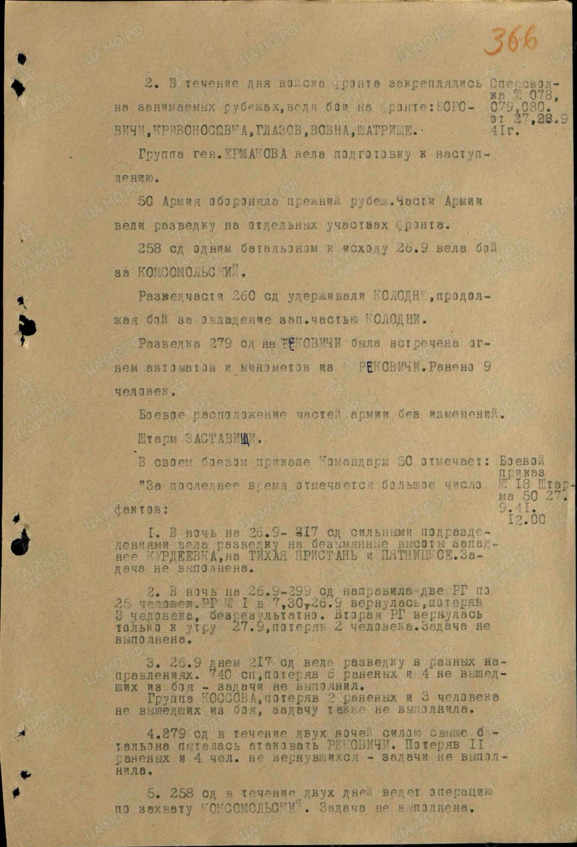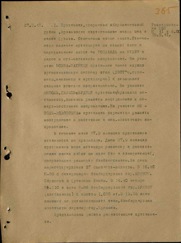 Сводка Главного Командования Красной Армии за 27 сентября 1941 года.