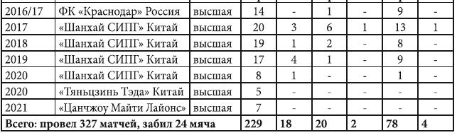 • Финалист кубков России (2013) и Китайской футбольной ассоциации 2017 года.