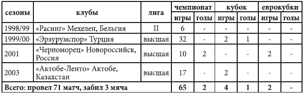 Амплуа: полузащитник. Мастер спорта Казахстана с 1996 года.