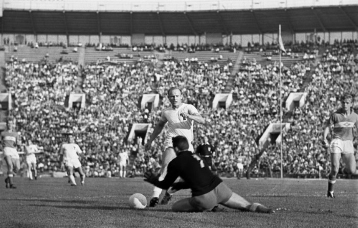 Приближался чемпионат мира, первый, в котором приняла участие советская сборная. В отборочном турнире ей выпало провести дополнительный матч с поляками на нейтральном поле в Лейпциге. И там Стрельцов открыл счёт, наши победили 2:0, и теперь – дорога в Швецию. Все у нас тогда ждали этого чемпионата с уверенностью, что советская сборная не подкачает, а может быть, и привезет «Золотую богиню». Что и говорить, расстановку сил в мировом футболе мы видели в розовом тумане, о бразильцах судили по клубу «Атлетика португеза», гостившему в Москве, и ничего, кроме жонглирования, не показавшему. Сборную ФРГ, тогдашнего чемпиона мира, наши дважды обыграли в товарищеских встречах. Побеждали на стадионе «Динамо» знаменитые клубы Англии, Италии, Югославии, Венгрии, да и недавний успех на Олимпиаде в Австралии что-то значил. Но что было, несомненно, так это то, что команда у Качалина и впрямь сложилась как на подбор.