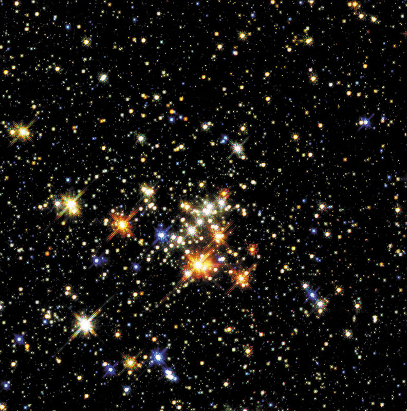 Когда-то люди считали, что бесконечное число звезд может находиться в равновесии, поскольку силы притяжения между близкими звездами уравновешиваются силами отталкивания между далекими. Однако сегодня мы понимаем, что такое равновесие было бы неустойчивым. Скопление Квинтоль, одно из крупнейших молодых звездных скоплений в нашей Галактике Млечный Путь, разрушится всего через несколько миллионов лет под действием гравитационных приливных сил в ядре Галактики. Но в течение короткого периода своего существования оно сияет ярче всех остальных звездных скоплений нашей Галактики.