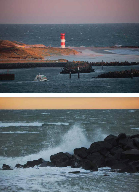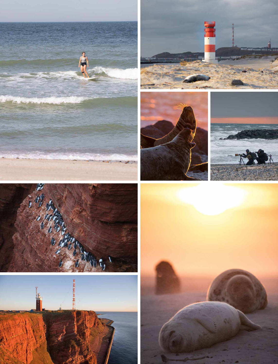 Bitte auch zu dieser Zeit die 30 Meter Abstand einhalten, schon zur eigenen Sicherheit, denn die bis zu 300 Kilo schweren Bullen tragen um diese auch Zeit auch ihre Brunftkämpfe aus und können verdammt schnell robben. Richtige Sturmtage auf Helgoland sind ein Faszinosum für sich. Wenn keine Fähren mehr fahren und die Flugzeuge am Boden bleiben, dann wird das »Stormwatching« auf dem Eiland schnell zu einem pastoralen Naturerlebnis besonderer Intensität. Die Helgoländer Brandung am Nordstrand der Düne ist ein Tipp für Wellenreiter. Sie sollten ihr eigenes Board dabeihaben. Stärken kann man sich während der Saison im Restaurant am Südstrand.