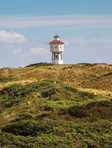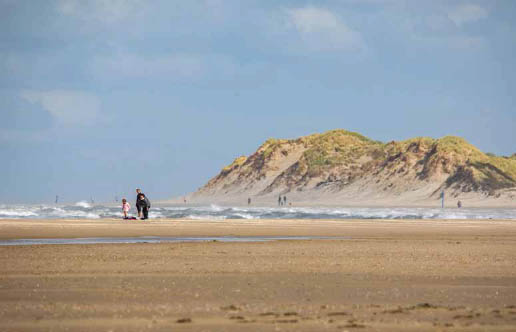 Der Hafen auf Wangerooge liegt mitten in der Weite der Wattseite des Eilandes. Um von hier zum Neudeicher Strand zu gelangen, könnte man die Inselbahn nutzen, die im Takt mit der Fähre in Richtung Inseldorf verkehrt. Von dort sind es dann 2,5 Kilometer bis zum Strandaufgang. Alternativ marschiert man direkt vom Hafen zum gut einen Kilometer entfernten, alles überragenden Westturm. Das 56 Meter hohe Bauwerk aus Klinker wird als Jugendherberge genutzt. Dies ist schon der dritte Westturm auf Wangerooge, da das Eiland besonders stark den Elementen ausgesetzt ist und bei einer Flut im Jahre 1855 gar in drei Teile zerrissen wurde. Unterhalb des Turmes wartet der erste Fahrradverleih auf Gäste. Je nach Wahl der Strecke ist man nach gut 6 Kilometern am Neudeich. Den Drahtesel lässt man am Deich zurück und marschiert über die Dünenkette hinüber auf die Meeresseite. Je nach Tidenstand kann der Sand hier bis zu 350 Meter breit sein. Zwischen den ausgeprägten Sandbänken kommt es bei höheren Wasserständen zur Poolbildung. So entsteht ein geschützter Bereich, der sich gut für Kinder eignet. Der Sand ist äußerst fein und die Wasserqualität sehr gut. Am äußeren Rand des Strandes wird es flott tief, und auch die »Großen« können hier hervorragend schwimmen. Am Spülsaum entlang kann man eine Ost-Umrundung des Eilandes zu Fuß starten und auf den markierten Dünenwegen auf der Landseite vom Deich zurück zum Ausgangspunkt gelangen. Im Café Neudeich direkt neben dem Strandaufgang kann man sich für die Aktivität belohnen.