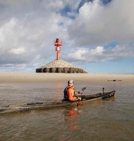 Langer, teils schwieriger Hinweg, stark tidenabhängiger Strand, hohe Wellen möglich, mitunter gefährlich starke Priel- und Tidenströmungen.