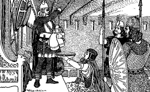 Через некоторое время после этого в большой зал, где сидел король Хальфдан, вошла служанка. В руках у нее был маленький белый сверток.