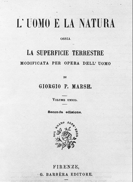 Марш, пребывая в Италии с дипломатической миссией в неспокойные времена объединения страны, несколько раз менял место своего нахождения: с Турина на Флоренцию и, наконец, Рим. В каждом городе он закончил по одному изданию книги «Человек и природа». В этих трех изданиях: 1864, 1874 и 1885 года – количество цитат из итальянских источников увеличилось в несколько раз, что отражает большу́ю осведомленность автора о местных экологических проблемах. Кроме того, в 1870 году вышел в свет итальянский перевод второго издания книги «Человек и природа». В результате Маршу удалось донести свое послание о разрушении окружающей среды, человеческой роли в нем и необходимости реставрации до широкой итальянской публики. Как оказалось, Марш сыграл значительную роль в том, что защита окружающей среды стала в Италии одним из острейших политических вопросов. В то время как многие американские эксперты обращались к изданию “Man and nature”, книга “L’Uomo e la Natura” стала настольной для их итальянских коллег [Lowenthal 1965].