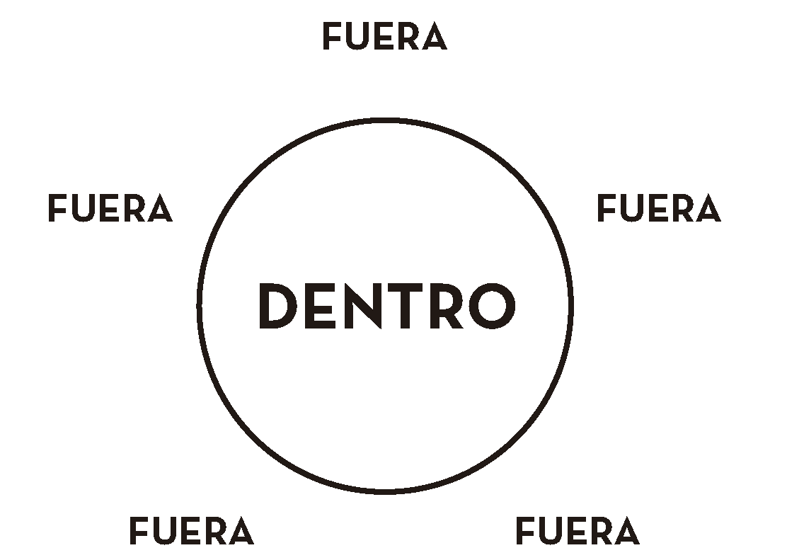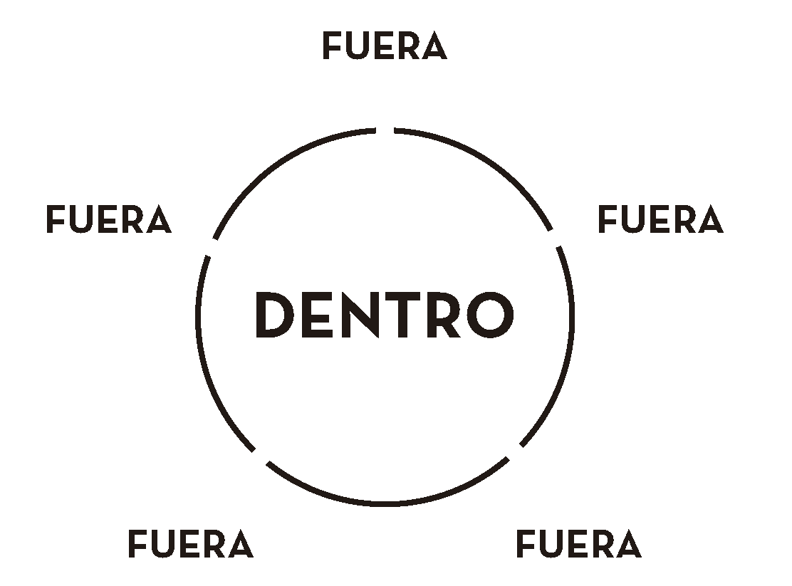El círculo encapsula cosas que queremos proteger, a menudo poder y posesiones. Las personas que consideramos amigas. Los recursos que creemos cruciales para nuestra supervivencia y éxito. De niños, protegemos estas cosas con frase como: «Ya tenemos suficiente gente para este juego». «El juego ya ha comenzado, no podemos detenernos por ti». «No tienes el juguete adecuado para unirte a nosotros».