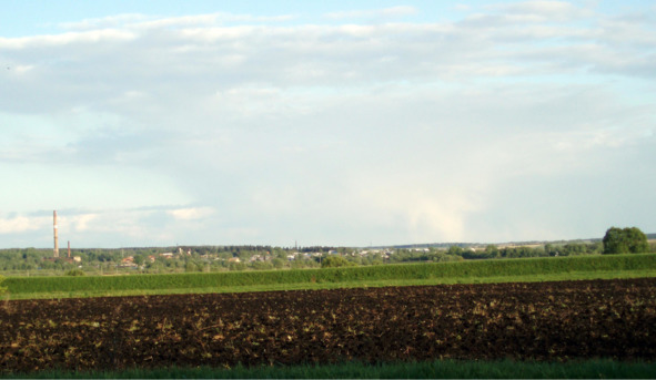 Ломовский оборонительный вал около села Козлятское (вид с севера, на заднем плане виден юго-западный район ЭМЗ)