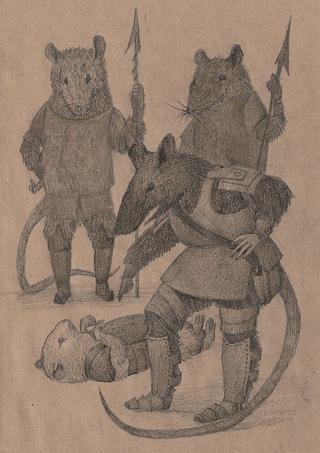 Крысаны подтащили его к небольшому помосту, посыпанному песком, и бросили на пол. Лежа на спине, было трудно осознавать, что происходит, но хомяк внутренне сжался, готовый ко всему, что произойдет с ним. Спустя секунду он услышал шорох лап, и увидел небольшого крысана, одетого в кожаные доспехи, с любопытством разглядывающего взятого в плен воина.