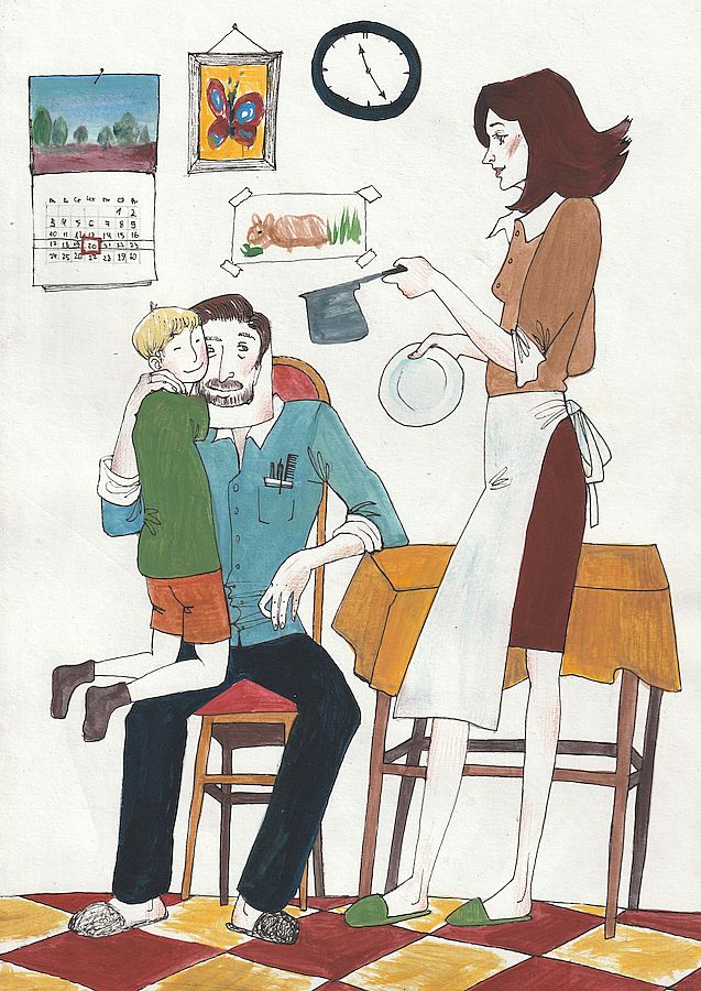 – Здравствуй сын! Как ты вырос! Все тебе расскажу, только дай дух перевести с дороги! Я тут и подарки тебе привез.