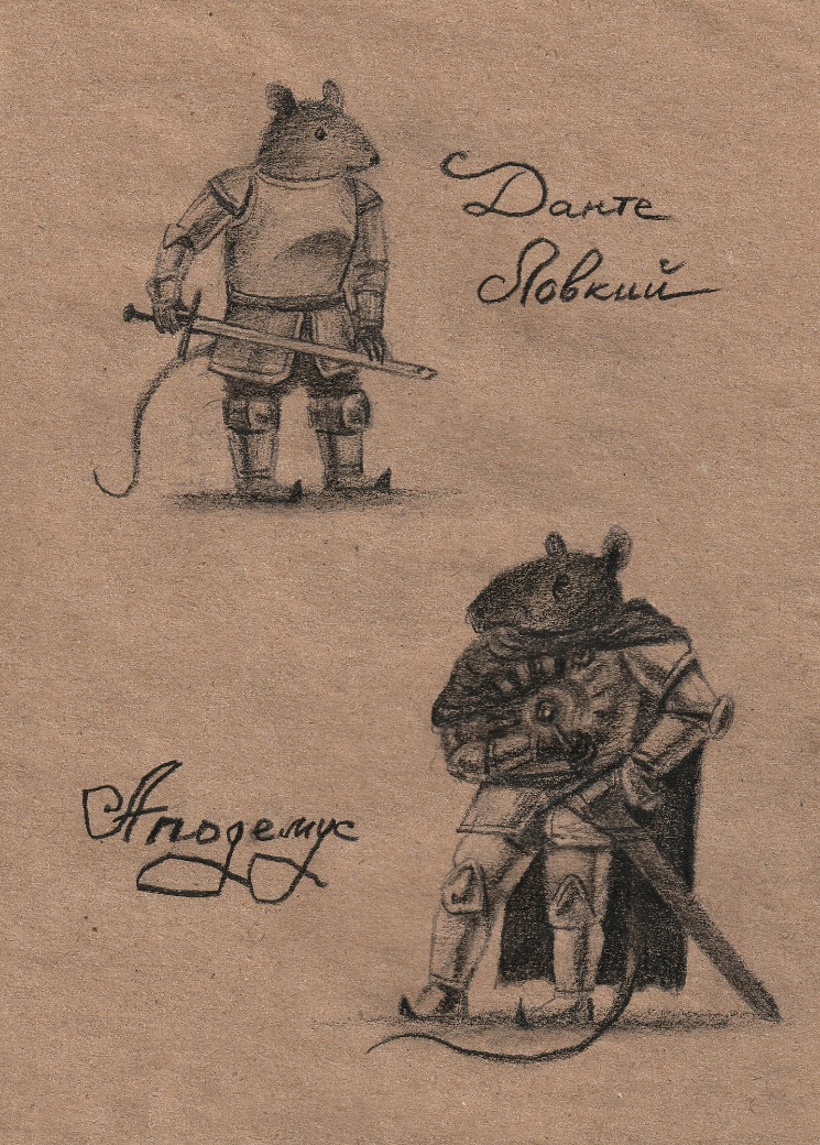 Аподемус дал сигнал и тотчас в зале остались только командиры боевых крысиных тысяч. В полном доспехе, отливающем серебряной белизной, с копьем и тяжелым мечом они двинулись на Данте, а он приготовился обороняться, готовый, как всегда, встретить смерть в бою или победить. Мышак отразил несколько атак, но следующий выпад крысана-тысячника проткнул предводителя мышиного Легиона в районе сердца, он медленно опустился на колени и прошептав «Родентиа!», повалился на пол.