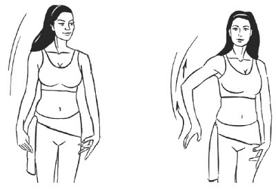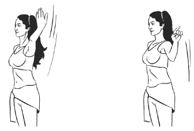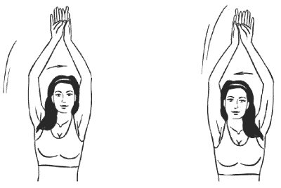 Опустив руку до уровня бедер, снова верните ее в исходное положение и повторите упражнение еще 10 раз. Поменяйте положение рук (левая – у бедра, правая – вверху) и выполните упражнение в другую сторону.