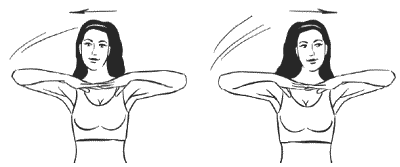 16. Стоя прямо, выполните плавные и медленные поочередные вращения плечами назад, сначала правое плечо отводится назад, затем – левое. Повторите упражнение на 30 счетов.