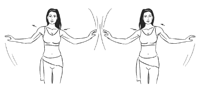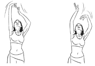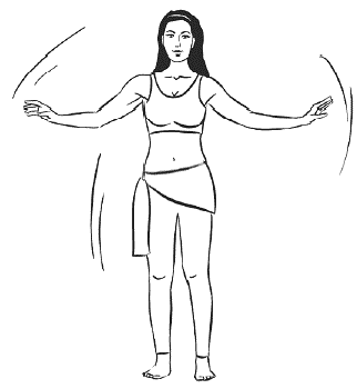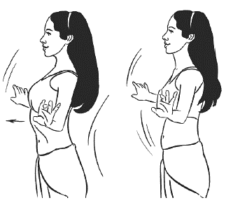 25. Станьте прямо, выпрямите руки в стороны, локти грациозно согнуты (не забывайте про восточную позу кистей рук). Выполните подъем грудной клетки вверх, затем опускание вниз. Движение происходит только в грудном отделе, остальная часть вашего тела остается неподвижной. Повторите упражнение на 30 счетов.