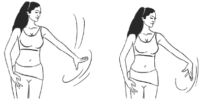 Выполните постепенное опускание руки вниз с одновременным мягким вращающимся движением кистью. Круги следует выполнять плавно, расслабленной рукой и только за счет запястья.