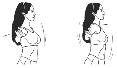 21. Продолжайте выполнять поочередные удары плечами вперед-назад, но увеличивая скорость. Выполнив движение 20 раз, еще больше увеличьте скорость выполнения: потряхивайте плечами максимально быстро (20 раз).