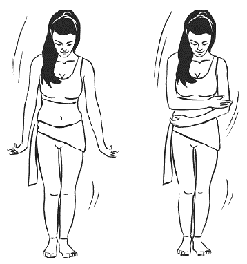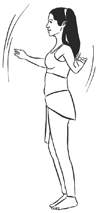 15. Аналогично двум предыдущим упражнениям, но к волнообразным движениям рук и переносу веса тела с одной ноги на другую добавьте движение головой. Теперь все ваше тело должно выполнять плавные, медленные и волнообразные движения. Повторите упражнение на 30 счетов.
