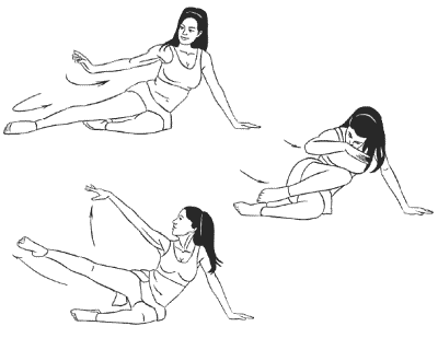 31. Из предыдущего упражнения соедините ноги вместе и выполните движение бедер, образуя небольшие круги. Двигайтесь сначала 20 раз вправо, затем 20 раз влево.