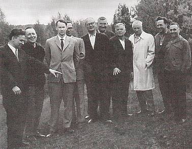 Преподаватели кафедры М-4 и руководители факультета «М» на загород- ной базе в пос. Орево, 1970 год. Слева направо: В. А. Одинцов, В. С. Соловьев,