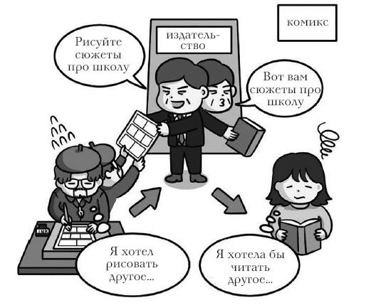 Бумажные комиксы публиковались редакционным отделом. Команда рассматривала произведения, которые планировались к изданию, и принимала решение, пропускать их дальше или нет. Писателям было сложно полностью контролировать свою работу, а читатели пассивно потребляли комиксы, отобранные редакцией. Коммуникация между авторами и читателями не осуществлялась без посредничества издательства. В то время большинство потребителей комиксов были учениками средних и старших классов, поэтому в основном произведения представляли собой школьные драмы (примечание 3) с участием персонажей среднего или старшего школьного возраста. Конечно, и тогда читатели хотели видеть произведения самых разных жанров.