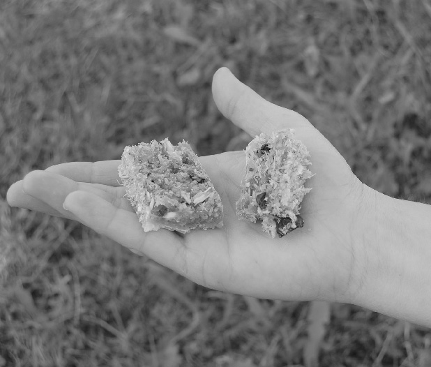 Wir erhitzen die Kerzenreste im Topf bis diese schmelzen und rühren anschließend so lange Sägemehl unter, bis dieses alles Wachs aufgesogen hat und eine teigige Masse entsteht. Mit einem Löffel geben wir die „Wachs-Holzmehl-Masse“ auf eines der Brettchen, lassen das Ganze ein wenig auskühlen und pressen anschließend das andere Brettchen so oben drauf, dass wir eine ca. 1 cm dicke Platte erhalten. Die ausgehärtete Platte schneiden wir mit dem Messer in die gewünschte Größe und lagern die fertigen Grillanzünder in einer Plastiktüte. Wir haben unsere letzten Grillanzünder mal probeweise in die direkte Sonne gelegt und waren erstaunt, wie wenig sie geschmolzen sind, trotzdem würden wir eine möglichst schattige Verwahrung im Gepäck empfehlen.