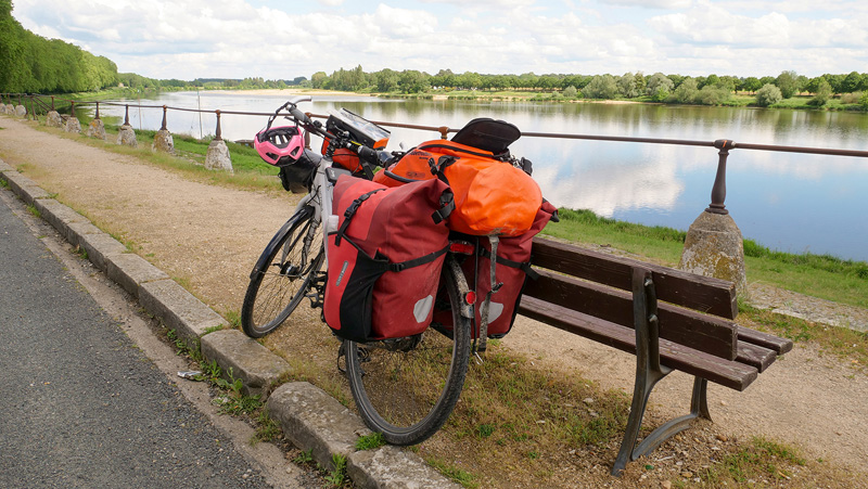 Die selbstgemalte Karte ist jedenfalls großartig und ich erreiche schnell die Stelle, an der laut meiner Fahrradkarte der Zeltplatz sein müsste. Ich rolle am Loire-Ufer vor und zurück, einmal, zweimal, dreimal, kann jedoch partout keinen Campingplatz ausmachen. Das gibt es doch nicht! Ich frage Jogger, Fußgänger, biege sogar zur nächsten Straße ab, um mich bei einem Autofahrer zu erkundigen. Ich weiß nicht, wie lange ich schon umherirre, als eine junge Frau, die Englisch mit mir spricht, ausführlich auf ihrem Smartphone recherchiert und dann eine Nummer anruft, von der wir beide der Meinung sind, sie gehöre zum Campingplatz, der nahezu vor unserer Nase sein müsste. Wir erfahren, dass er erst ab dem 22. Juni geöffnet hat, was erklärt, warum wir ihn nicht sehen, da das Areal noch komplett abgeriegelt und winterfest gemacht und damit nahezu versteckt ist. „Was mache ich denn jetzt?“, frage ich mich und fahre langsam Richtung Innenstadt, denn an eine Weiterreise bis zum nächsten Platz ist gar nicht zu denken, angesichts der abendlichen Tageszeit.