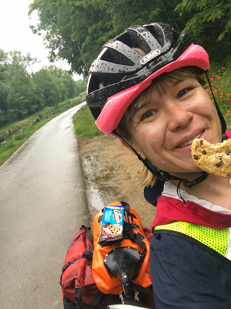 Das Alleinreisen selbst funktioniert gut für mich, aber Dinge wie unbeschwert einkaufen, Sehenswürdigkeiten von innen anschauen, in freier Wildbahn zelten, mit vier statt mit zwei Augen auf Wegverlauf und Verkehr größerer Städte schauen – all das habe ich als Alleinreisende nicht. Mein Multitasking ist schon in mancher Stadt auf die Probe gestellt worden: Route finden beziehungsweise behalten, nicht umfahren lassen, selbst nicht umfahren, Sehenswürdigkeiten entdecken, filmen, fotografieren, dabei noch einen Seitenblick riskieren, ob nicht irgendwo ein Lebensmittelgeschäft zu finden ist … Aber es geht und wird mit jeder Stadtpassage auch etwas leichter.