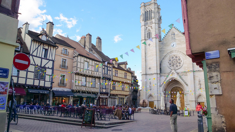 So laufe ich noch einige Zeit beschwingt durch die Gassen dieses einladenden Ortes, beobachte Menschen, die vor Cafés und Restaurants sitzen. In der zweitgrößten Stadt in Burgund lockt vor allem die Kathedrale St. Vincent am gleichnamigen Platz mich und meine Kamera an. Die Altstadt rund um die Kathedrale ist so gut erhalten, dass es mir riesigen Spaß bereitet, an den Fachwerkhäusern entlang zu spazieren. Rast mache ich etwas abseits in einem kleinen Lokal in einer schmalen Gasse. Ich bekomme einen der wenigen Außenplätze ab und lasse mir einen regionalen Rotwein empfehlen. Der Givry trifft meinen Geschmack gut und schenkt mir einige Zeit des stillen genießerischen Seins und Beobachtens vorbeischlendernder Menschen. Als das Glas geleert ist und ich eigentlich gerade zahlen will, komme ich mit dem Kellner ins Gespräch, der sich als Besitzer des Lokals vorstellt.