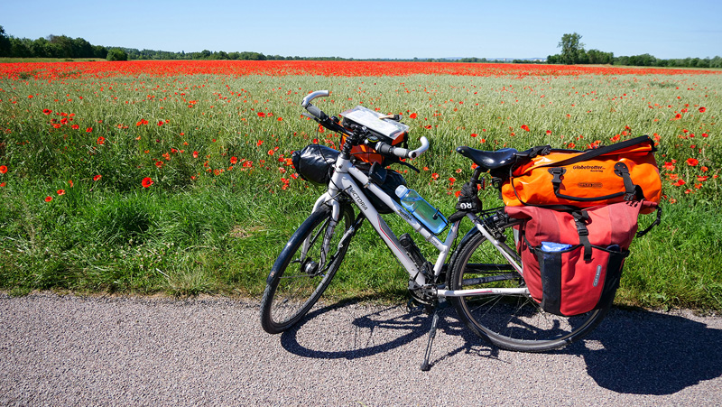 Auf meinem Weg in das gut einhundert Kilometer entfernte Dole fliege ich förmlich, obwohl ich an feuerrot leuchtenden Mohnfeldern vorbeikomme, dessen Samen ja bekanntlich müde macht. Mein straffes Tempo steigert sich sogar noch, als ich zu sieben jungen Radlern, die sich die „Green Riders“ nennen, aufschließe. Insgesamt ist die Gruppe mehr als 20 Radler stark und unternimmt die Reise ans Schwarze Meer in Form eines öffentlichen Trips. Das heißt jeder, der möchte, kann sich ihnen anschließen. An ihren Ruhetagen leisten sie ehrenamtliche Arbeit auf Farmen, helfen bei Reparaturen oder der Ernte. Die Idee des ökologischen Reisens geht auf Rob Greenfield zurück, der einst von New York City nach Seattle, auf der anderen Seite der Staaten, radelte. Der amerikanische Abenteurer, Umweltaktivist und Unternehmer hat es sich zur Lebensaufgabe gemacht, für eine gesunde Erde einzutreten. Verschiedene öffentlichkeitswirksame Projekte, mit denen er auf Lebensmittel-, Strom- und Wasserverschwendung aufmerksam macht, kennzeichnen seine Arbeit. Um zum Beispiel für den Wert von Wasser zu sensibilisieren, verzichtete er ein Jahr lang aufs Duschen und nutzte für die Körperpflege lediglich natürliche Wasserquellen wie Flüsse, Seen, Wasserfälle, sogar den Regen. Der 1986 geborene Mann ist für die Menschen, denen ich mich angeschlossen habe, großes Vorbild. Organisiert hat sich die Gruppe vor der Abreise via soziale Medien, und der Transport ihrer Fahrräder über den großen Teich schlug lediglich mit einhundert Dollar Aufpreis aufs Flugticket zu Buche. Tagsüber teilen sie sich in Dreier- oder Vierergruppen auf – je nach Fitnesslevel. Eine Gruppengröße von sieben Sportlern ist schon eine Ausnahme. Nur für die Nacht sind die Crews größer: Die aktuell 20 Radler splitten sich zur Hälfte, sodass sie in Zehnergruppen zelten können, überwiegend wild. Bei Arbeit und Unterschlupf auf Höfen und ähnlichem kommen dann alle zusammen und verbringen die Nächte in großen Räumen. Ihr Zeitplan ist straffer als meiner, bereits Ende Juli wollen sie am Schwarzen Meer sein, eine knappe Woche vor mir, was ihr Tempo erklärt. Meine Wohlfühlgeschwindigkeit ist etwas langsamer als ihre, außerdem suche ich stets nach dem schönsten beschilderten Radweg, während meine Gesprächspartner sich von Google Maps auch mal direkt über eine Landstraße von Dorf zu Dorf schicken lassen. Da sie genau das gerade vorhaben und ich mir nach 50 Kilometern eine erste Pause verdient habe, klinke ich mich aus.
