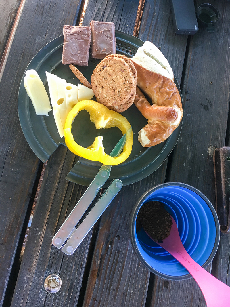Als wäre es meine Belohnung, schieben sich die Wolken auseinander und machen Platz für die wärmenden Strahlen der Sonne. Ich genieße Tee, Brot und Camembert als Nachmittagssnack und bemerke einen weiteren Vorteil von Regentagen: Die Freude über Wetterbesserung ist umso größer und die Sonne hat das Potenzial, meine Endorphine in die Achterbahn zu schicken. Ich grinse in den Himmel.