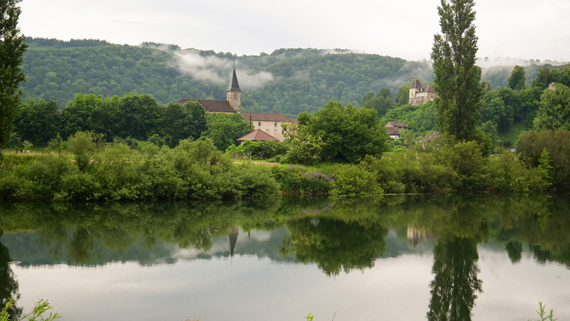 Optisch hat das aktuelle Klima schließlich auch etwas, freue ich mich, als ich meine Kamera zum Fluss ausrichte, auf dessen gegenüberliegender Uferseite eine kleine Steinkirche ihr Spitzdach-Türmchen zwischen den Bäumen vorschiebt und sich der Wolkendunst in den Hügeln in Szene setzt.