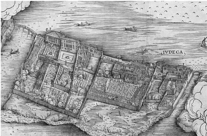 Пригородные виллы на Джудекке. Фрагмент карты Венеции Якопо де’ Барбари с высоты птичьего полета, гравюра на дереве, 1500 г.