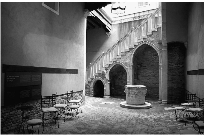Небольшие закрытые дворики, пронизывающие плотную городскую застройку Венеции, были важны для обеспечения естественным светом и пресной водой. Некоторые из них были частными дворами внутри дворцов, обычно расположенными сзади или с одной стороны; другие обеспечивали доступ к ряду более скромных домов, обычно принадлежащих одному домовладельцу. До XVI в. лестницы, как правило, располагались во дворах, чтобы сэкономить место внутри зданий. В более бедных домах это были простые деревянные пандусы, а во дворцах – сложные каменные лестницы с резными балюстрадами, некоторые из которых изначально были покрыты деревянными навесами. Самой яркой внешней лестницей в городе является великолепная винтовая лестница, известная как Скала-дель-Боволо (боволо – венецианское диалектное слово, обозначающее раковину улитки), построенная для одной из ветвей семьи Контарини около 1499 г.